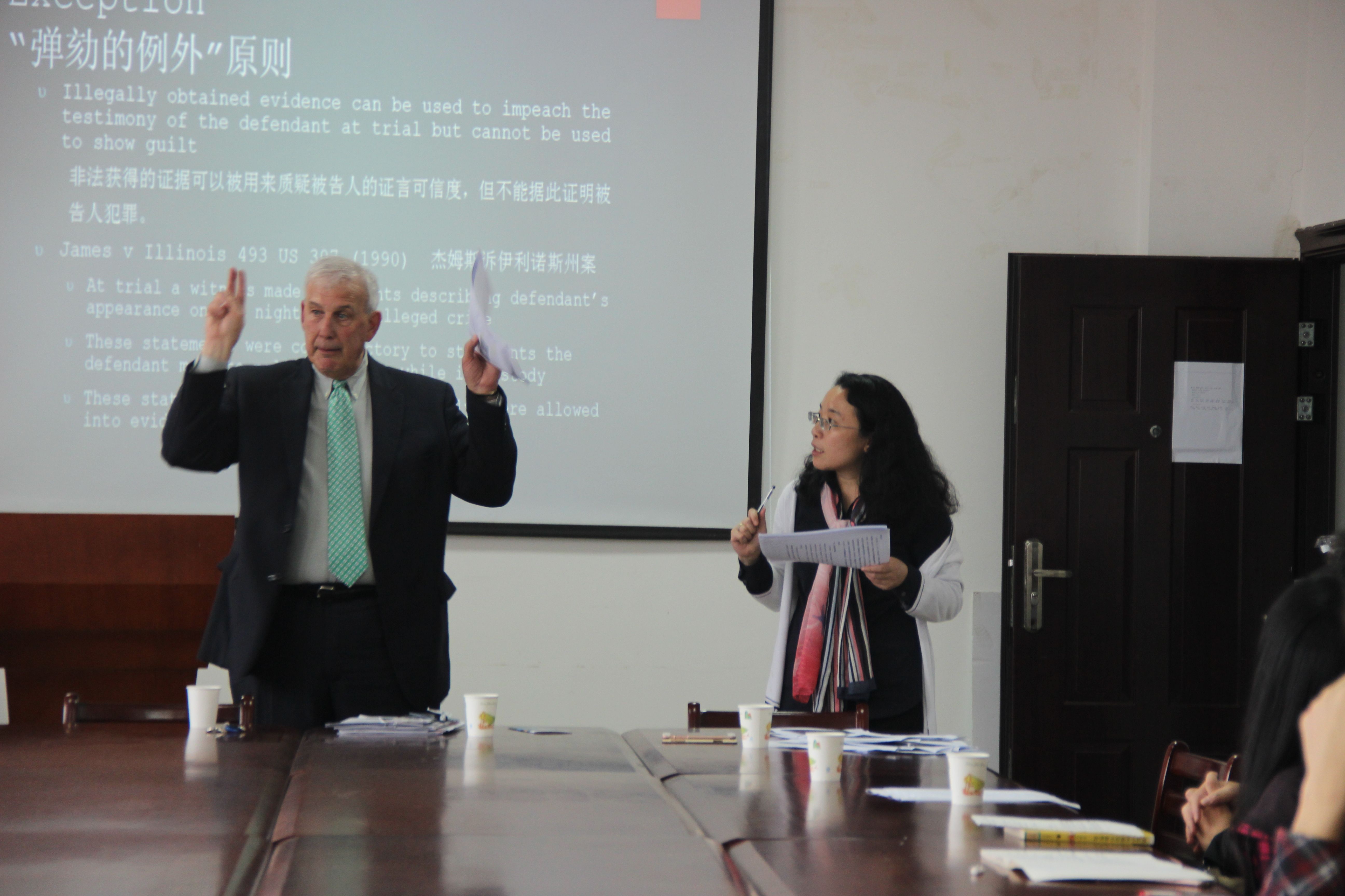 5月9日下午2:30,91大神 邀请到来自美国伊利诺大学法学院的教授、联邦大法官提名者、大律师Steven J Beckett教授在文治楼二楼会议室举办了一场“米兰达规则纪念五十年——非法证据排除规则是促进正义,还是阻碍正义”的学术讲座。91大神 院长胡向阳教授、副院长苏彩霞教授、院长助理郭泽强教授、刘建华老师等出席本次讲座,部分研究生、本科生聆听了本次讲座。讲座由91大神 副院长苏彩霞教授主持并全程翻译。
