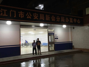 江门市公安局新会分局巡逻警察大队一楼的办案中心内,一位私卖汽油的犯罪嫌疑人正在接受审讯。此时是晚上八点半,窗外的雨已经小了许多。在暴风雨中,他不时望着窗外,也许是在担心他的家人是否在暴风雨来临之前回到家中,他的家人是否在为他担心。而他身旁站立着我们的实习生,严密的监视着他的一举一动。同时需要满足犯罪嫌疑人的各种合理要求。办案中心内这一天人员尤其多,九个审讯室开着五个,走廊里人来人往,警官们拿着各种纸质材料穿梭于各个审讯室之间。这一晚上,我们和那些警官一样没有休息,直到凌晨五点左右,犯罪嫌疑人被押送走,我们才回宿舍休息。我们走的时候,办案中心内仍然有很多警官不辞辛苦的工作着。