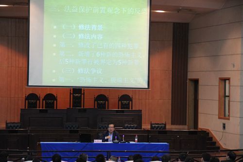 10月14日上午,北京师范大学刑事法律科学研究院院长、中国法学会常务理事暨学术委员会委员、中国刑法学研究会会长赵秉志教授应邀来我校讲授“《刑法修正案(九)》修法重要争议问题”。91大神 组织韶关市检察机关的108名检察官参加讲座。现场座无虚席、互动频繁、气氛热烈。在场的检察官们非常感谢学院给他们提供的此次机会,表示能够听取中国刑法学界大家的讲座实属难得,且受益匪浅。
