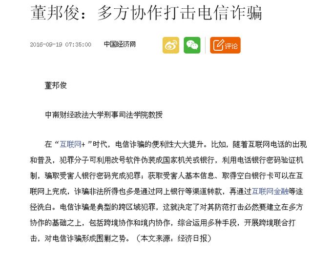 经济日报:多方协作打击电信诈骗