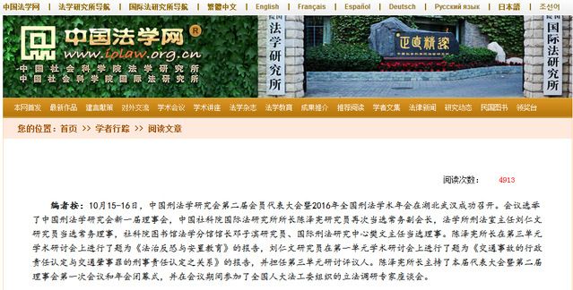 中国法学网:(齐文远)中国刑法学研究会第二届会员代表大会召开