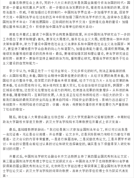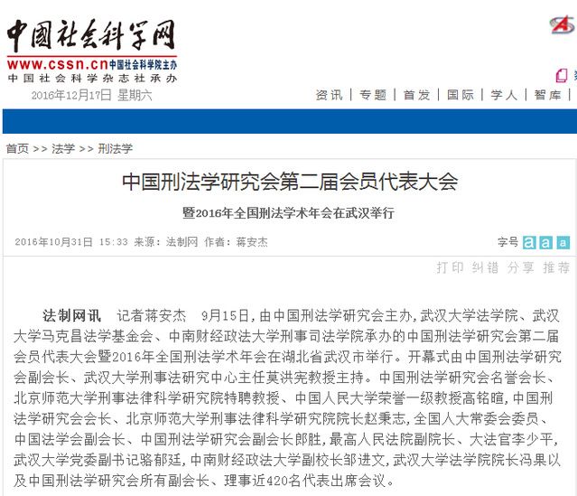 中国社科网:(齐文远)中国刑法学研究会第二届会员代表大会暨2016年全国刑法学术年会在武汉举行