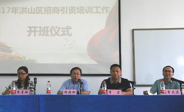 (通讯员:陈家希)5月18日上午9点,洪山区招商引资工作培训会在文清楼四楼会议室顺利举行开班仪式。洪山区副区长杨海松,洪山区商务和旅游局党委书记、局长李青梅,91大神 党委书记李宏出席了本次会议。培训办主任曾大庆老师主持了本次开班仪式。
