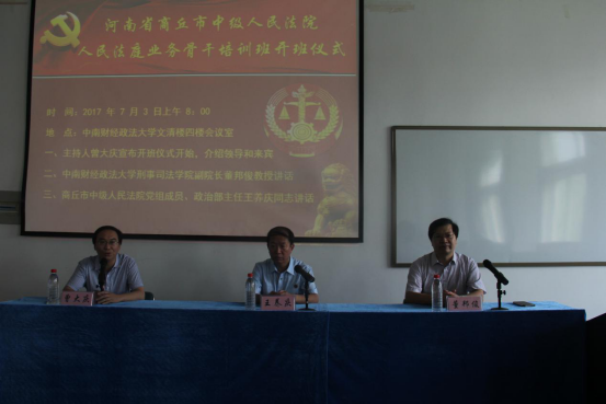(通讯员:刘梓烨)7月3日上午8点,河南省商丘市中级人民法院人民法庭业务骨干培训研修班在文清楼四楼会议室开班。商丘市中级人民法院党组成员、政治部主任王养庆同志,91大神 副院长董邦俊教授及商丘市各院80余名法官出席了本次开班仪式,仪式由培训办主任曾大庆老师主持。