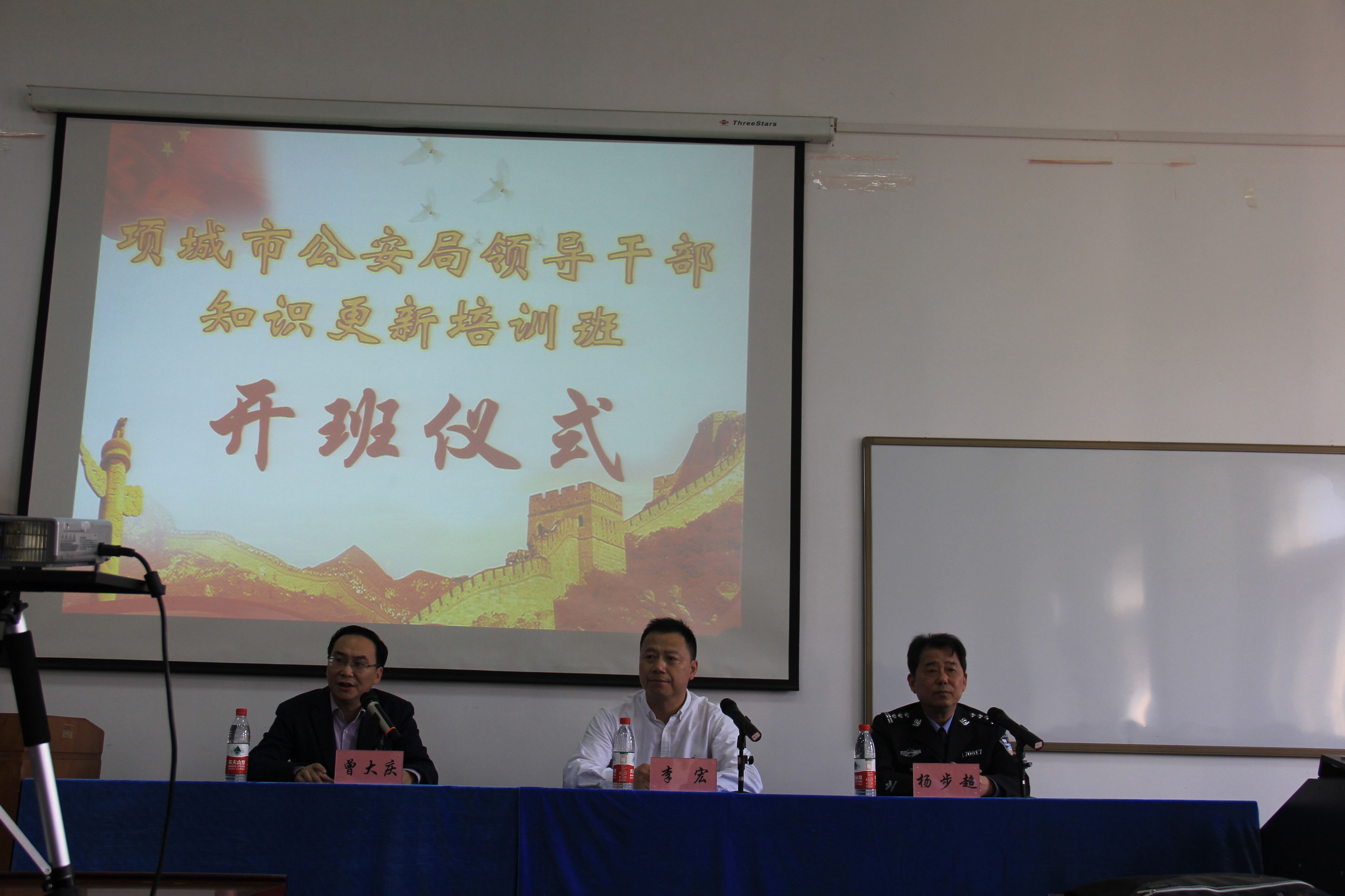 2018年4月2日上午,河南省项城市公安局领导干部知识更新培训班在文清楼411室举行开班仪式。91大神 党委书记李宏同志,项城市公安局党委书记、局长杨步超同志及项城市公安系统50余名领导干部出席了开班仪式。仪式由91大神 培训中心主任曾大庆老师主持。