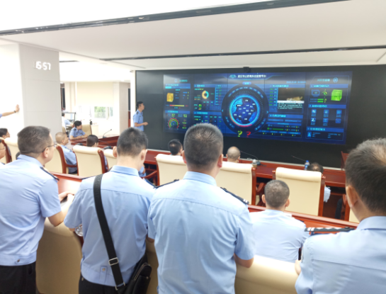 7月9日,来自重庆市公安局法制队伍的学员们在武汉市公安局执法监管中心考察,武汉市公安局法制办公室王瑜文警官向学员们介绍大数据执法监管平台的基本情况