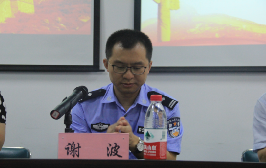 重庆市公安局法制总队副总队长谢波在开班仪式上发表讲话