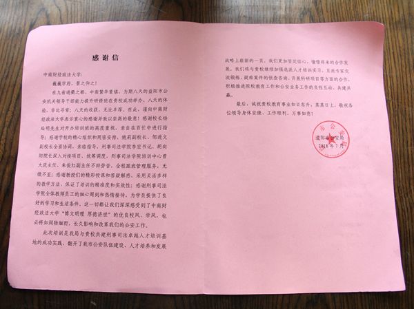 共建刑事司法卓越人才培训基地 益阳市公安局向我校遥寄感谢信