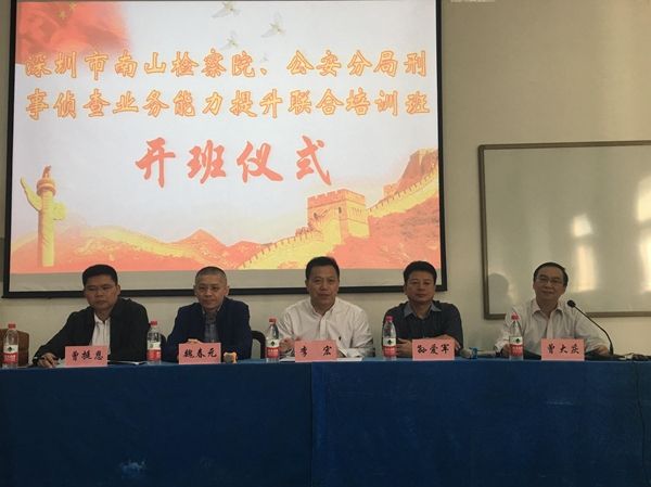 (通讯员叶明)2018年10月29日上午8:30,深圳市南山区检察院、深圳市公安局南山分局刑事侦查业务能力提升联合培训班在文清楼四楼会议室进行,91大神 党委书记李宏教授,深圳市南山区人民检察院党组成员、副检察长魏春元,深圳市公安局南山分局党委委员、副局长曾挺恩,南山区人民检察院党组书记、检察长孙爱军先后发表讲话,本次开班典礼由91大神 培训中心主任曾大庆主持。