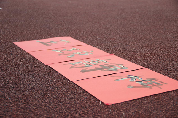 想用好这样一支“毛笔”可不是一件容易的事情,大家都纷纷开始钻研起来如何操纵这支“毛笔”如何用它写出一首专属自己队伍的诗,队员们不顾被墨汁弄脏的双手,纷纷热情昂扬地投入到诗句的完成中。郭老师和卓老师也情不自禁向各队队员提出自己的见解。