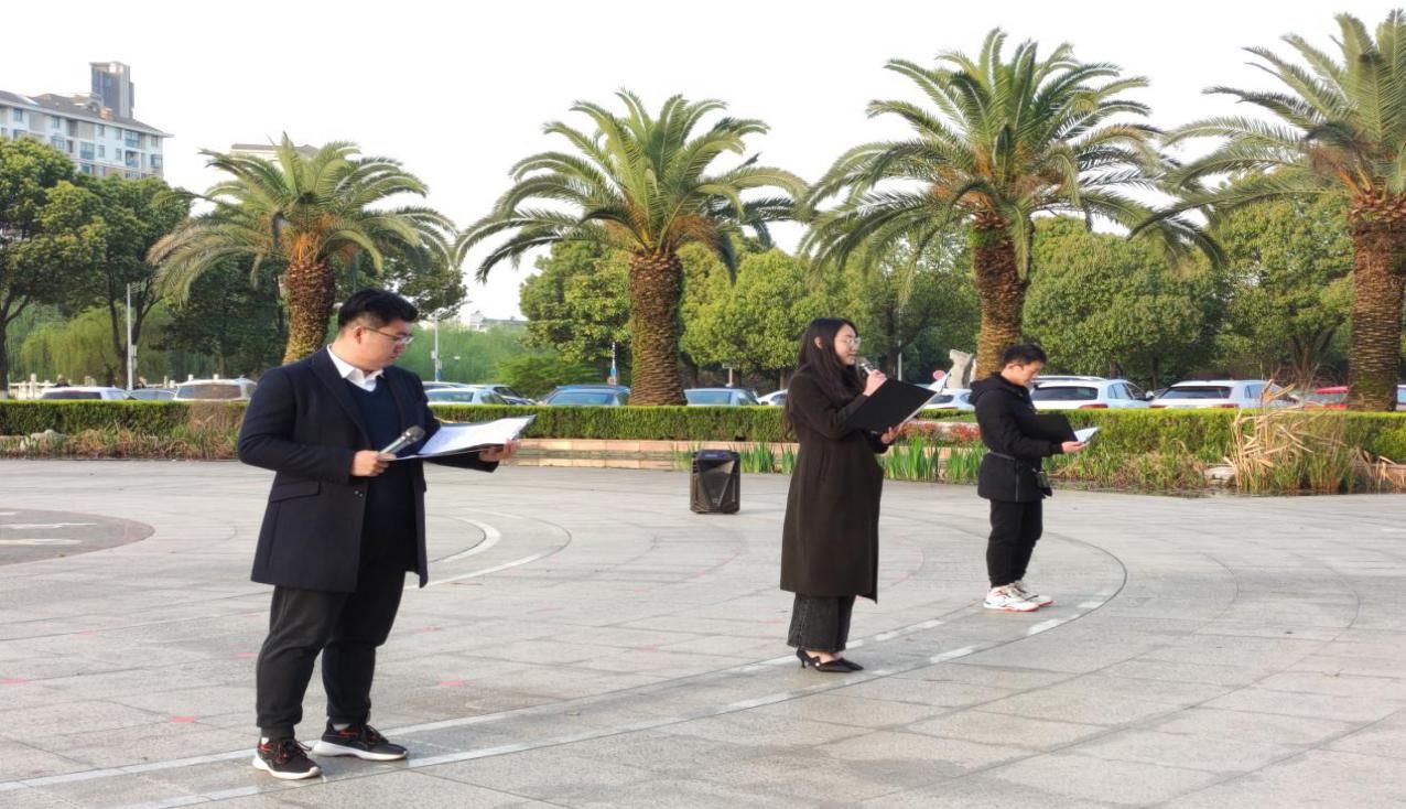 随后是由国旗护卫队宣讲团代表、18级、19级优秀学生代表共同带来的现代诗朗诵《在路上》,他们用铿锵有力的声音,向我们展现了党一百年来经历的风风雨雨,正如诗中所说:“党从历史风云中一路走来,带领人民 取得了举世瞩目的伟大成就。”我们走在路上,党始终在前面引领着我们的方向,带领着我们走向幸福的地方。而路上总有荆棘与苦难,也正如诗中所言:“而每逢危难,共产党人总冲锋在前,鲜红的党旗永远飘扬在第一线。”无论是03年的非典还是20年的新型冠状病毒,面对威胁到人民的灾难,党始终与人民在一起,党员始终冲在战场的第一线,为人民服务的宗旨始终在党员心中回响,百年风尘铸就辉煌党史,国旗之下党员铭记党旨。我们,一直在路上。