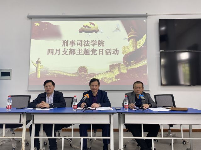 会议伊始,胡向阳院长首先带领学院全体教工党员集中学习了《新时代中国共产党的历史使命》《为什么说政治安全是国家安全的根本》等重点研读内容;随后,万里雪副书记结合《习近平:全面提高新形势下宗教工作水平》讲话精神,带领学院全体教工党员集体重温了《中国共产党纪律处分条例》第六十条至六十四条等重要党内法规;董邦俊副院长结合《习近平:在全国脱贫攻坚总结表彰大会上的讲话》精神,重点介绍了学院与云南省盐津县公安局结对帮扶共建豆沙镇派出所调解室情况。会上,胡向阳院长结合学院岗位实际、近期工作要点,特别强调: