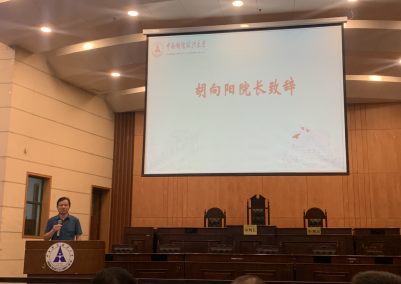 最后,院长胡向阳教授致辞。胡院长首先强调了此次实习的重要性:实习不仅关乎着我们成绩的高低,更是一次难得的体验理论联系实际的机会。他希望同学们用心观察体会各实务部门的职能分工及运作机制,进一步巩固所学知识。其次,胡院长还对同学们提出了四点要求:一是号召同学们尽可能参加集中实习,以确保实习质量;二是严格遵守纪律,严守作息时间,服从命令,听从指挥,时刻注意自己的言行;三是要注意交通安全、执法安全和信息保密;四是要多问、多做、多学,利用实习充实自己。