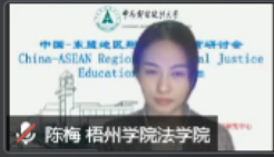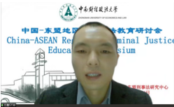 徐涤宇校长助理首先对来自各国的学者、专家、博士生表示了由衷的欢迎和感谢,其次介绍了学校悠久的办学历史以及成绩斐然的对外交流工作,最后表达了与来自东盟各国的专家、学者进行广泛、深入交流、共同夯实人类命运共同体法律基础的期待,并预祝本次研讨会取得圆满成果。