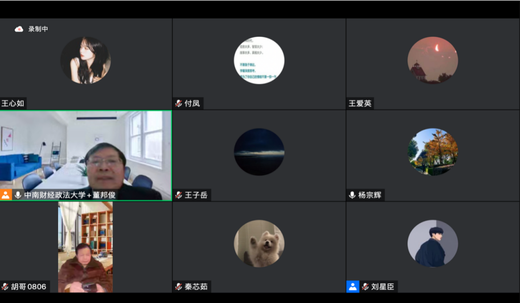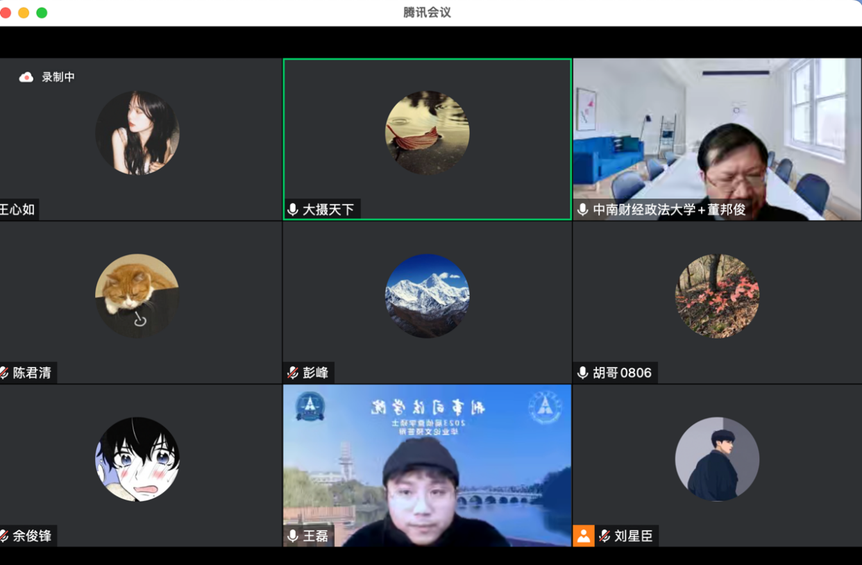 最后,董邦俊教授代表答辩委员会宣布同意张舒然、周宇康、张思晗、任意、王子岳、李静雯、张君、胡乔淳、王爱英、赵培华、王磊、彭林清、杨云皓、邓志源、余俊锋、魏亚玲、王淼、刘森霖、王利美、吕航、魏博、陈安超等二十二位同学通过毕业论文预答辩,并表示祝贺。博士生导师杨宗辉教授、胡向阳教授、董邦俊教授分别对各位同学后续的修改提出了具体的建议和要求。届时,2022年下学期侦查学专业硕士生毕业论文预答辩圆满结束。