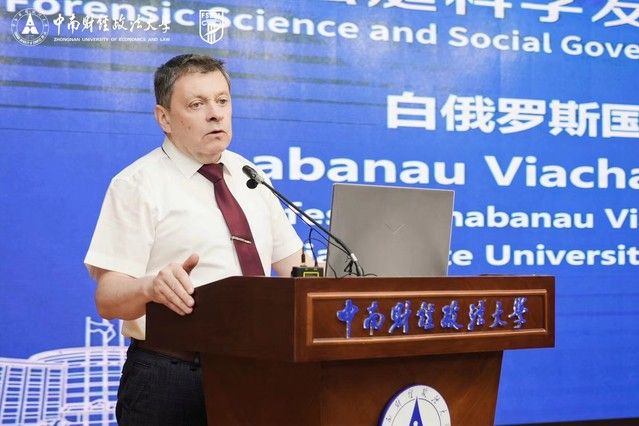 白俄罗斯国立大学Shabanau Viachaslau教授在致辞中对本次研讨会的召开与邀请表达敬意和谢意。他赞赏了当前正进修于白俄罗斯大学犯罪学教研室的两位犯罪学研究生,并表示中国与白俄罗斯大学经过多年的合作,联合培养了众多高技术人才。白俄罗斯大学历来十分重视侦查学人才的培养和相关学术会议的举办,经常邀请与会专家学者参加本校学术会议,以有效促进校内的学术交流与学科建设。