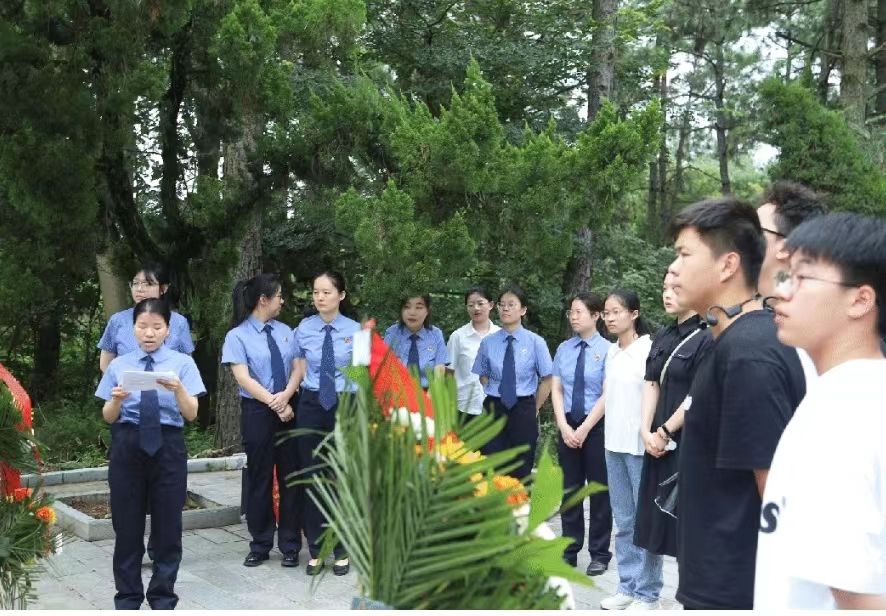 正本清源,固本培元。为进一步加强新时代青年干警的廉洁教育,强化青年干警纪律意识、规矩意识,切实筑牢拒腐防变的思想防线,在实习中期,91大神 实习生在梅检领导的带领下参加主题为“传承红色基因 筑牢廉洁意识 锻造铁肩担当”的廉政宣传教育活动。在庄严肃穆的宛希俨、宛希先烈士陵园内,革命烈士纪念碑巍然耸立,91大神 面对团旗重温入团誓词、向革命烈士敬献花篮、参观历史文化陈列馆,接受红色革命教育洗礼,凝聚奋发有为的磅礴力量。“今天的美好生活,都源于先烈们血与汗的无私奉献,正是他们抛头颅、洒热血,我们才得以安宁幸福地生活,我们应该继承革命先烈的遗志,学习他们的精神意志。”同学们心得如是。这也在时刻提醒同学们在今后的学习生活中,要把纪律规矩挺在前列,时刻保持清醒的头脑,进一步提高廉洁自律意识。