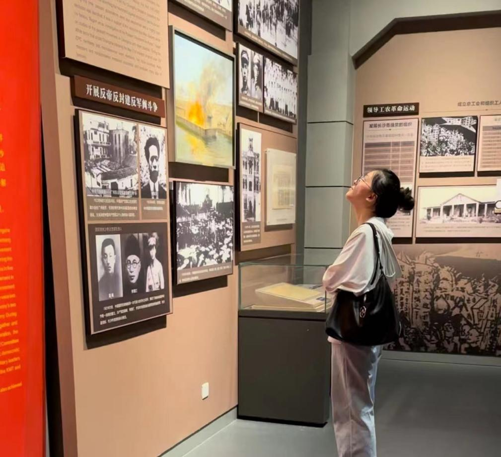 李薇同志到中国共产党长沙历史馆学习湖南省长沙市的革命历史与文化。此次党史馆旅程承载着革命的艰苦,馆中的一帧帧历史照片、一件件革命实物、一幕幕生动场景沉浸式展示了大革命时期中国共产党人在长沙探索中国革命道路的艰辛历程。她感慨万千,作为青年,我们要时刻居安思危,只有国家繁荣强盛,和平才能长久稳定,人民才能幸福安康。