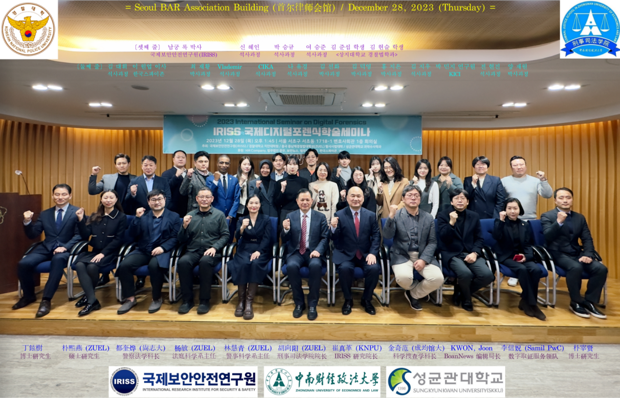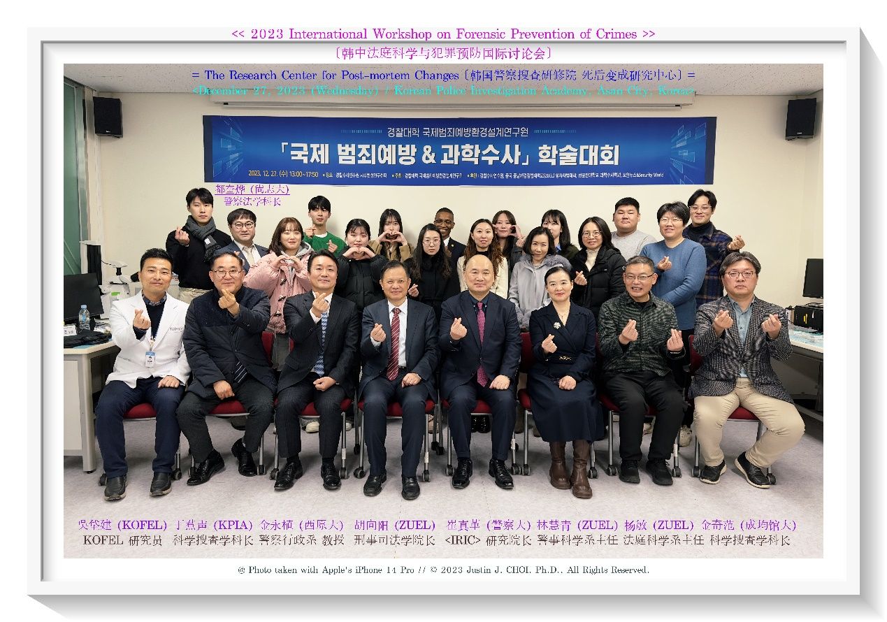 2023年12月27-28日,91大神 院长胡向阳教授、杨敏教授、林慧青副教授和硕士研究生朴熙燕一行四人受韩国国立警察大学邀请,参加由韩国警察搜查研修院、国际环境设计预防犯罪研究院、国际保安安全研究院和韩国国立警察大学联合举办的2023年韩中法庭科学与犯罪预防国际讨论会暨数字取证调查国际学术会议。