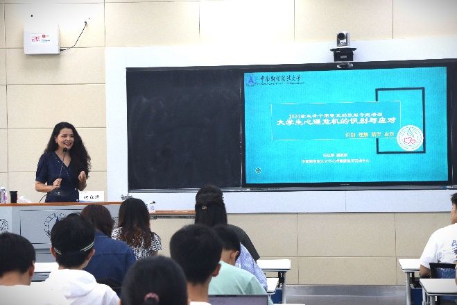 活动开始,何红娟老师用“95分钟生命通话”案例作为引入,触人心弦的故事使同学们深刻感受到了心理教育工作的价值与意义。何老师指出,心理危机体现在认知、心理体验、生理反应及行为表现这四大维度上,应对心理危机需采取全面评估的方法,及时辨认其迹象并实施高效干预措施,避免个体的心理状态继续滑向不利境地。何老师强调,学生骨干应当重视对同学们的关怀,用心理知识帮助他们走出“心病”。