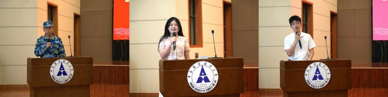 在新生代表发言环节,本科生代表苗晟飏、研究生代表高月和博士生代表王江昕分别以《筑梦中南》《研究生必备品质》和《仰望星空与脚踏实地》为主题作了代表发言。