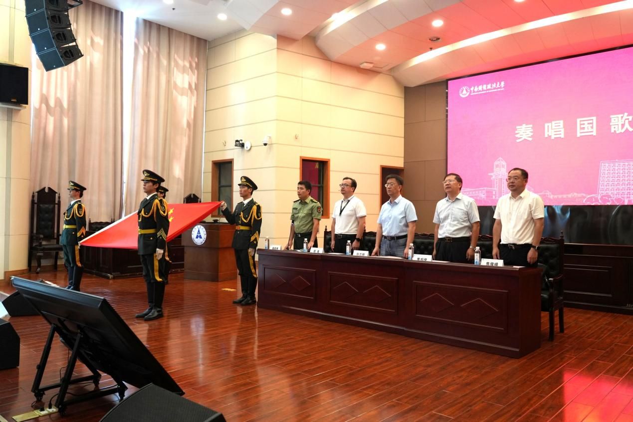 大会在庄严的国歌声中拉开序幕。