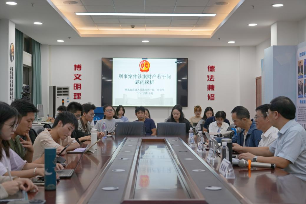 研究生会承办的第314期“文澜大讲堂”之名家讲坛在南湖校区文治楼二楼会议室顺利举行。本次讲座采用线上与线下相结合的方式,以“涉案财产处理研究”为主题,特邀湖北省高院审委会委员、刑一庭庭长官文生主讲,91大神