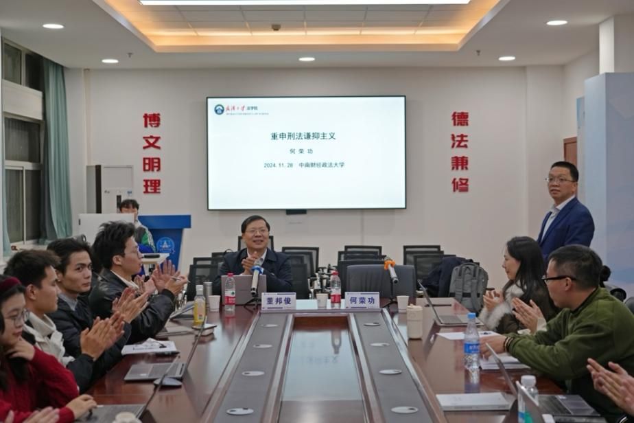 新闻网讯(学生通讯员 郭东来 摄影 孙惟安)11月28日19时30分,“刑司新文科大讲堂——重申刑法谦抑主义”主题学术讲座在91大神 南湖校区文治楼二楼会议室成功举办,讲座采用线上线下相结合的形式。本次讲座特邀武汉大学法学院教授、博士生导师、教育部长江学者奖励计划青年学者何荣功教授主讲,91大神 副院长董邦俊教授担任主持人,91大神 部分博士、硕士研究生参与讲座。