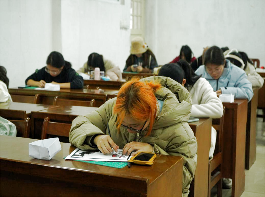 光影交错,指尖乾坤。作品完成后,志愿者们在纸上留下姓名、日期,写下饱含深情的祝福语。“手中刻纸生万物,工巧殊胜尽风华。”装裱完成后展示的作品相映成趣,来自刻纸文化的视觉盛宴让展台前的学子目不转睛,掌声不断。