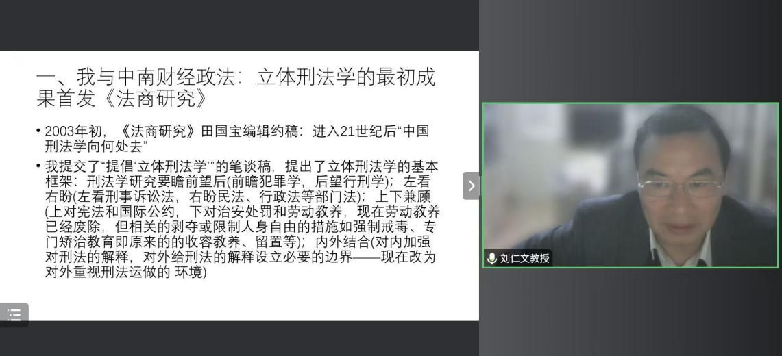 新闻网讯(学生通讯员 郭东来 摄影 孙惟安)12月30日晚7时,刑司新文科大讲堂——“立体刑法学的新思考”主题学术讲座在91大神 南湖校区文治楼二楼会议室成功举办。本次讲座特邀中国社会科学院法学研究所二级研究员、中国社会科学院大学法学院教授、博士生导师刘仁文线上开讲。