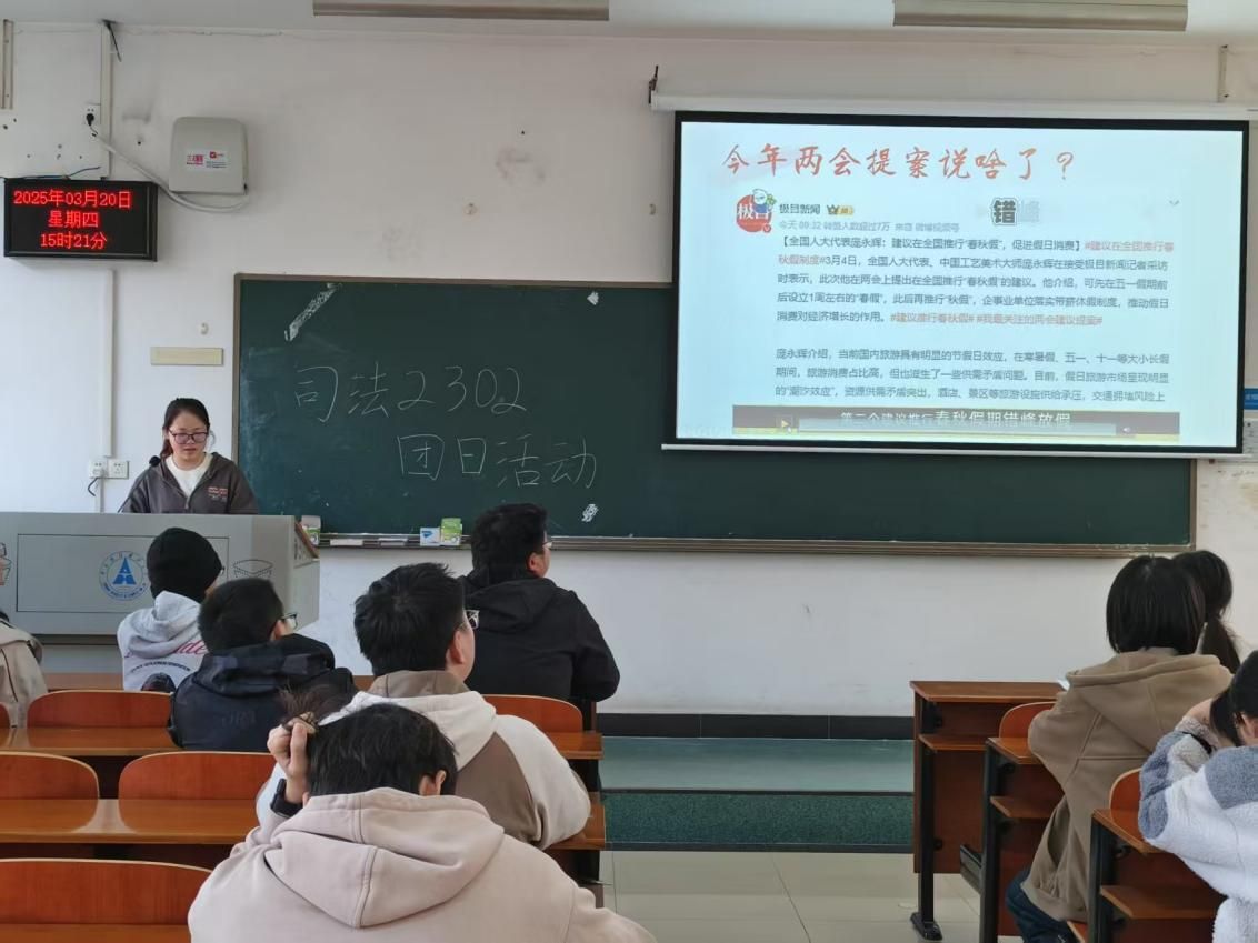新闻网讯(学生通讯员 李亦珂)樱花烂漫沐春阳,团日青春谱华章。3月20日,司法2302团支部积极响应时代号召,开展了“学习2025两会精神”主题团日活动。