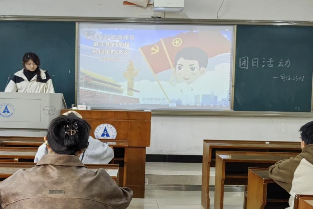 新闻网讯(学生通讯员 李雅欣 陈亚萍)为增强团员青年的纪律意识和规矩意识,3月20日,司法2301团支部于文澜楼101教室开展了以“强化团纪意识,彰显青春担当”为主题的团纪处分条例专题学习会,由团支书陈亚萍主持。