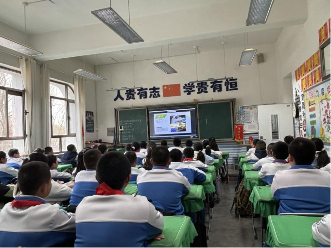 课堂上,志愿者分别同步向酒泉第四中学小学四、五、六三个年级进行平行式的课堂教学。志愿者以微视频《土壤:地球生命的基础》作为课堂先导,生动立体地向同学们展现了节约资源的紧迫性。当核电站的警报响起,孩子们身临其境,沉浸式地在紧张刺激的氛围中吸收掌握了核应急知识。在生物安全环节中,志愿者分析了外来物种入侵案例。课程最后,志愿者则聚焦近年来中国航天事业的发展以及所克服的重重困难,强调了太空探索的责任感与太空安全的重要性,并鼓舞同学们将“艰苦奋斗”的中国航天精神运用实践在日常的学习和生活中。