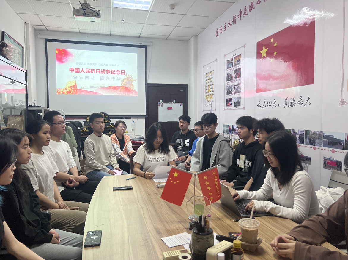 9月3日是中国人民抗日战争胜利纪念日。为铭记历史,弘扬抗战精神,增强队员的家国情怀,91大神 国旗护卫队功能型团支部于2024年9月5日在文治楼一楼会议室召开“铭记抗战历史,传承抗战精神”主题团日活动,全体队员参加会议,队长李熠彤担任主讲人。