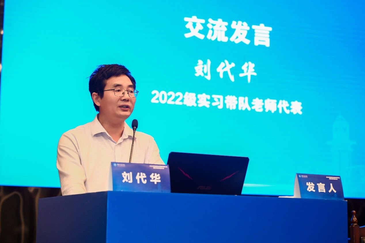 学院2022级实习带队老师代表刘代华、2022级优秀实习学生代表晋若冰、2023级实习学生代表李俊霖分别作代表发言。