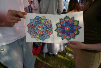 本次活动包含“情绪盲盒”、“曼陀罗绘画”、“植物拓染”三项子活动,以艺术疗愈与互动分享为核心,为同学们提供沉浸式心理调节体验。