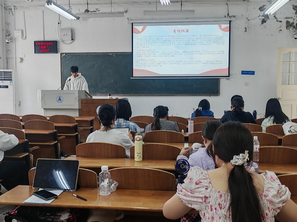新闻网讯(学生通讯员 陈亚萍)为厚植团员家国情怀,彰显青年责任担当,司法2301班团支部5月20日在文澜306召开了“青春燃志绘宏图,铁肩担道谱新篇”主题团日活动,组织委员吴钊以“青春向党”为主线,通过历史回顾、精神研习、视频感悟三大篇章,带领全体团员青年在思想碰撞中筑牢理想信念,在薪火传承中砥砺家国情怀。