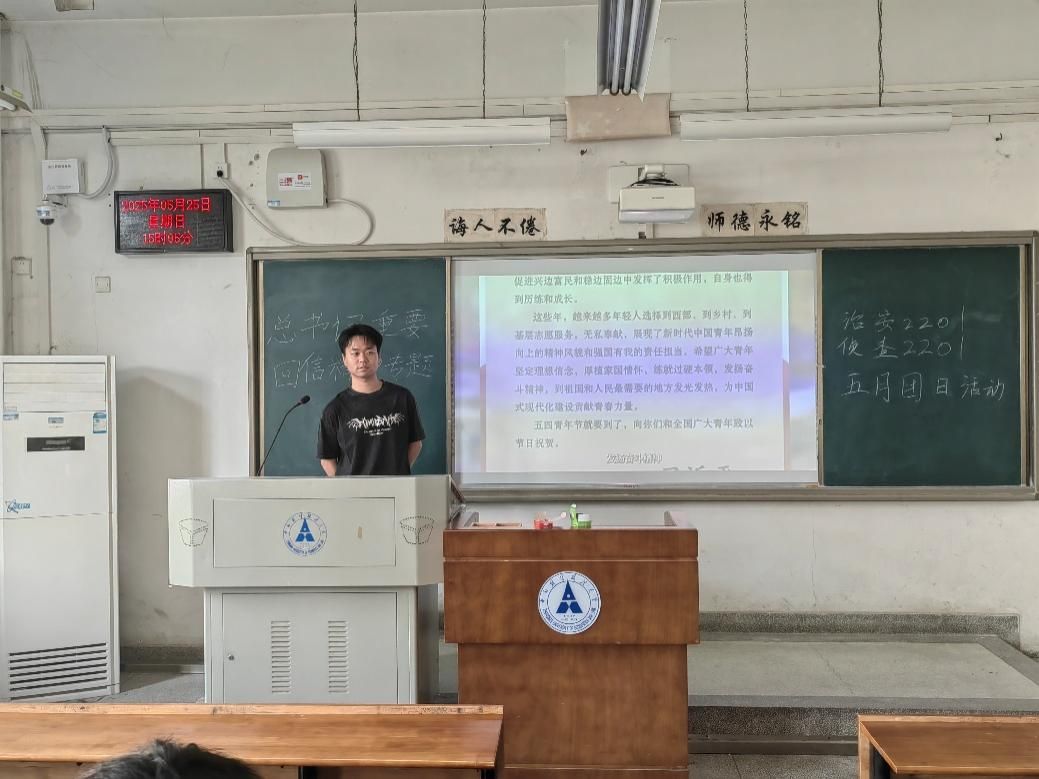 新闻网讯(学生通讯员 李承泽 刘宝阳)5月25日,治安2201、侦查2201团支部于文澜301开展“担当青春使命”五月主题团日活动。引领支部青年感悟五四精神内涵,明确挺膺担当的实践路径,筑牢“强国有我”的思想根基。
