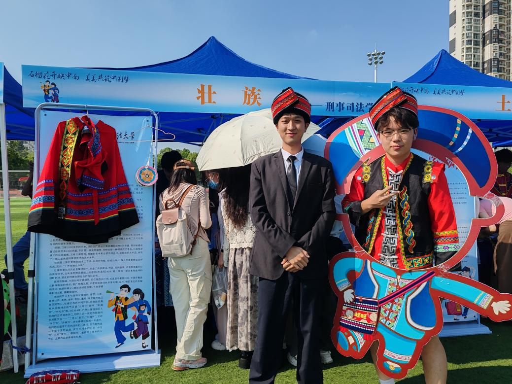 身着绚丽传统壮族服饰的讲解员成为展区一道亮丽的风景线,他们热情地向参观者介绍壮族服饰的特点、图案寓意及穿戴习俗,吸引了众多师生驻足欣赏与拍照留念。