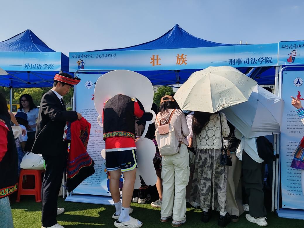 展区还特别设置了互动体验区和知识问答区,邀请师生近距离观赏和参与壮族传统手工艺制作。同时,展区还设置了简单有趣的壮族民俗知识问答环节,让参与者在轻松愉快的氛围中了解和学习壮族的传统文化。