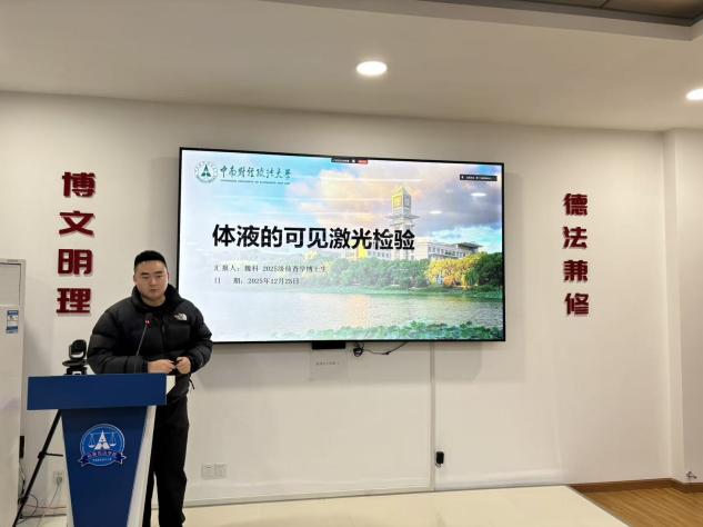 第一位发言人博士研究生魏科围绕体液的可见激光检验方法与效果评价展开探讨,指出目前隐性体液斑迹尤其是尿液足迹的现场显现主要依赖化学增强等有损方法,存在效率低、损害物证等问题,提出基于可见激光激发与“灰度荧光亮度标准差”定量评价的显现体系。实验表明,该方法可在纸张、地砖、织物等多种载体上实现尿液足迹的高效、无损提取,优选的波段组合可提升现场勘验的适用性与稳定性,进而建议未来研究可向深色载体检验、多体液拓展及长效样本分析等方向深化,以构建更系统、更可靠的现场体液激光检验技术体系。