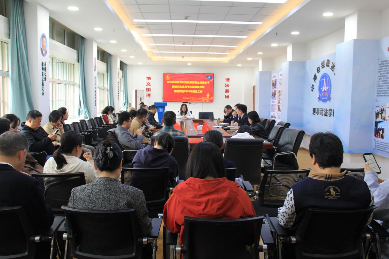 会议特邀河北省教育考试院高招部副主任霍永丰线上出席。霍永丰详细介绍了河北省高考生源基本情况及志愿填报政策,对我校积极赴河北各地高中开展招生宣传、为河北考生提供更多优质升学机会表示欢迎与感谢。他表示,将全力支持我校后续招生宣传工作。