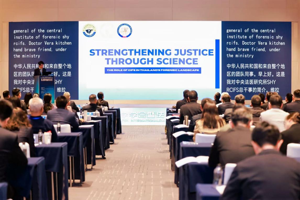 4月23日,会议进入特邀单位报告环节。陕西省公安厅就本省刑事技术工作整体概况进行了介绍,福建省公安厅分享了该省在刑事技术领域开展国际合作的实践经验与探索路径,公安部禁毒情报技术中心阐述了禁毒技术国际合作的相关情况,德州市公安局围绕基层警务国际协作与涉外案事件的规范化处置作了专题汇报,天津市公安局概要介绍了天津市刑事技术国际交流工作的开展状况。报告环节结束后,与会代表围绕法庭科学国际化合作等议题展开座谈交流。胡向阳教授在座谈中发言,对我校司法鉴定中心以及法庭科学专业的情况作了全面且深入的介绍,从中心的发展历程、组织架构、学科建设历史,对外交流经验、产学研结合取得的成果等多个维度,向国内外同行系统展示了我校在司法鉴定/法庭科学学科建设、科学研究、社会服务及国际化交流方面的工作进展与未来规划,获得了与会各方的积极反响。