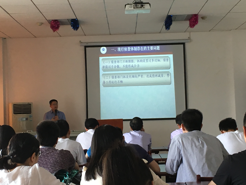为拓宽我院学生学术研究的视角,提升在校学生学术研究的平台,2016年5月3日下午,由刑事司法学院主办的一场题为“‘大部门、大警种’,改革背景下的侦查体制变革”的学术讲座在文治楼二楼会议室正式拉开帷幕。本次讲座我院很荣幸地邀请到来自中国人民公安大学侦查学院的刘为军教授,此外我院院长胡向阳教授、副院长苏彩霞教授、杨宗辉教授、董邦俊教授、周详教授以及付凤老师作为嘉宾莅临本次讲座。