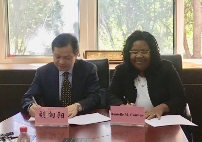 胡向阳院长代表学院向Danielle M.Conway 院长和Emily Morris副教授致以热烈的欢迎,然后介绍了我校和我院的发展历程,重点介绍了我院目前的学科、专业、师资队伍、人才培养模式等基本情况,Danielle M.Conway 院长和Emily Morris副教授对我院的学科建设的成就和人才培养特色表现了极大的兴趣和充分的肯定,随后Danielle M.Conway 院长也介绍了美国缅因大学法学院的基本情况,双方就法学、法庭科学人才培模式合作进行了深入的探讨,并签署了联合培养项目合作协议。