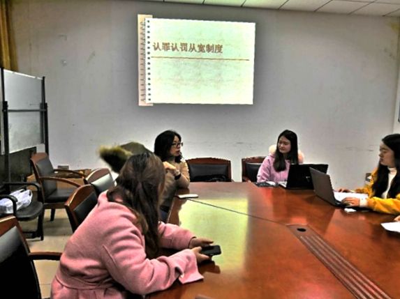 讨论伊始,吴群英同学首先运用图表数据等多种分析形式,从认罪认罚从宽制度的背景、认罪认罚从宽制度法条解读、认罪认罚从宽制度文献搜索三个方面,向同学们做了详细介绍。通过学习探讨,大家深切体会到认罪认罚从宽制度在依法及时惩治犯罪、强化人权保障、优化司法资源配置、推动繁简分流、提升诉讼质量效率、完善多层次刑事诉讼程序体系等方面发挥了重要作用。