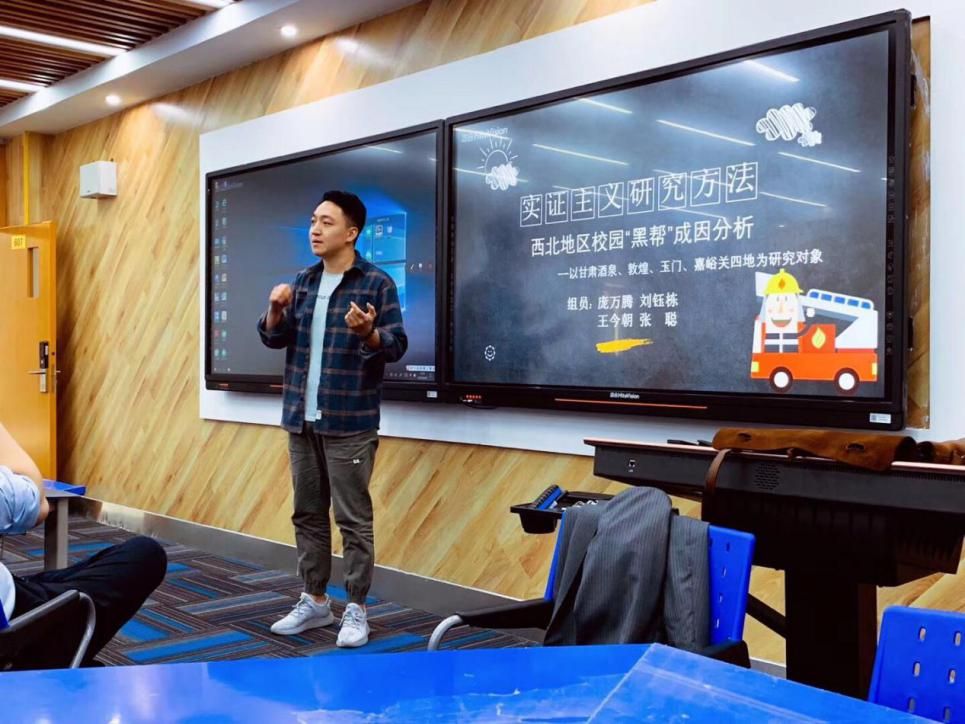 (通讯员:文沙)2019年4月26日下午,刑事司法学院周凌老师为2018级刑法学研究生开设的犯罪学(双语)终于在文澴楼607智慧教室落下帷幕。在该课开课之前,周凌老师“智慧教学之星 移动教学男神”的称号就流传在学生之间,再加上我校专门为雨课堂量身打造的智慧教室,更是吸引了大量的学生慕名来听课,尽管该课将选课人数限定为32人,但在可容纳下47人的文澴607仍旧座无虚席。