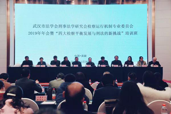 2019年11月28日下午,武汉市法学会刑事法学研究会检察运行机制专业研究委员会年会暨“四大检察平衡发展与刑法的新挑战”2019年培训班在武汉黄陂举行。本次年会由中南财经政法大学刑事司法学院和武汉市黄陂区人民检察院联合主办。我院副院长、博士生导师童德华教授,周凌副教授,刑法学系主任杨柳副教授,治安与边防管理教研室副主任袁建伟副教授,刑法学教研室副主任丁友勤副教授,研究生工作办公室吕兰老师,以及刑法学一年级博士生和部分硕士生代表参加了本次会议。