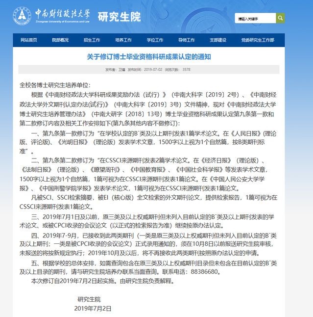 关于修订博士毕业资格科研成果认定的通知2019.07