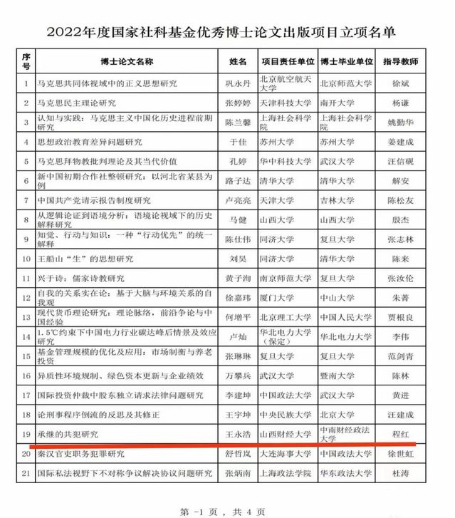 根据全国哲学社会科学工作办公室官网()的公示信息,由程红教授指导的刑法学专业2020届博士王永浩的学位论文《承继的共犯研究》获得“2022年度国家社会科学基金优秀博士论文出版项目”立项资助。